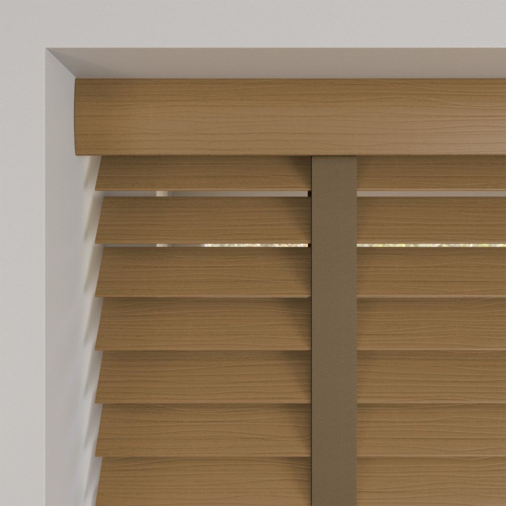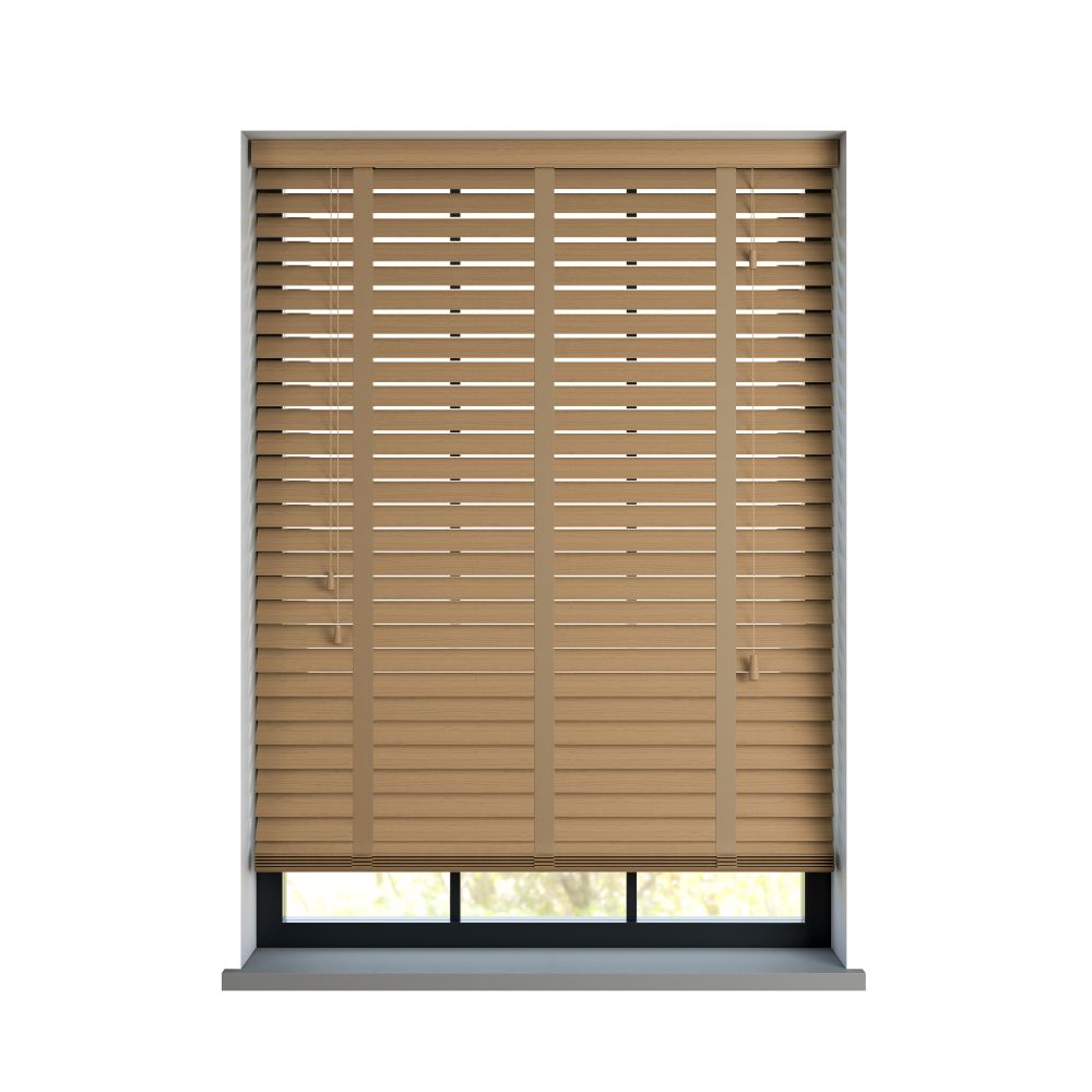 The Light Honey Faux wood is a lighter colour full of texture and with a beautiful wood grain running across it. This blind is ideal when matching in with lighter decors or other wood in the room. This blind comes in both 35mm or 50mm wide slats.