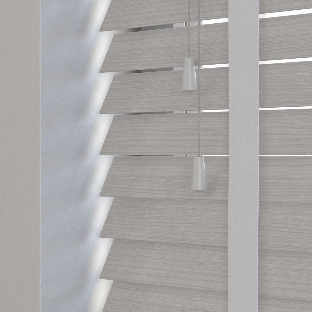 Grey Ash is a beautiful light to mid-grey colour with a soft grain pattern that will make you fall in love with it. The current interior design trend of using grey tones isn't just for walls and carpet but furniture too. Grey is in and the more you have the better. Monochromatic interiors are very popular at the moment and our Grey Ash would bring that extra level of texture to your room. Paired with our Rolling Fog tape, this combination will bring you that grey heaven. This blind will come with 50mm wide slats and a maximum width of 240cm, giving an impressive, plantation shutter look to your window.
